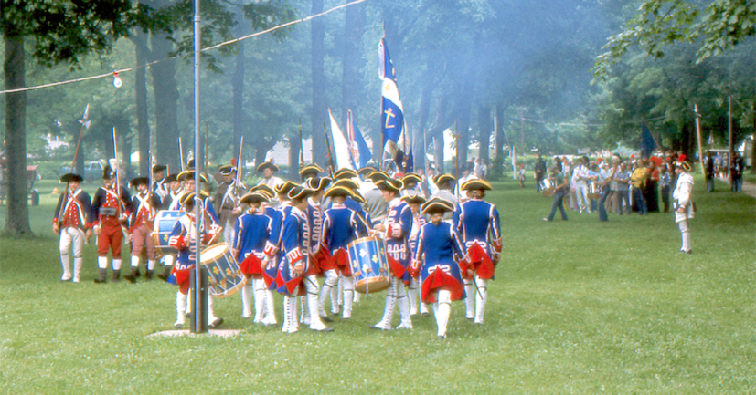 From David Jahntz: I'm also attaching (above) a rather famous photograph I was luck enough to take of the NWTA's first colors ceremony on the Memorial Day Weekend in 1975. It was at the town of Battleground, north of Lafayette, Indiana. To the left is the 2nd Virginia Regiment leading the Alliance into position and Commander Paul Block on the right side of the photography. The Tippecanoe Ancient Fife & Drum were going to move farther to the left side as the forces approached from the upper central part of the photograph.